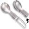 Le couvert multifonction Spork existe aussi en version pliable et en alliage de titane : il s'agit de la Spork pliable Titanium ou Folding Spork de chez Optimus. Ainsi, vous gagnez en légèreté sans perdre en solidité. Et vous avez à la fois une cuillère et une fourchette avec un format plié très compact : 95 mm. Format déplié : 165 mm. Poids : 18 grammes. Autre avantage : matériau inoxydable.