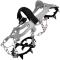Avec leurs 12 dents accrocheuses en acier inoxydable trempé (anticorrosion) et leur maillage en acier inoxydable zingué (anticorrosion), les crampons Ice Master Camp méritent amplement le titre de crampons à neige et le titre de crampons à glace. Il faut signaler qu'on les trouve aussi avec l'appellation de crampons antidérapants. Grâce à leur contour en élastomère à haute résistance, ils sont faciles et rapides à installer sur vos chaussures : vous pouvez donc les mettre et les enlever plusieurs fois au cours de votre trek sans perte excessive de temps. Une fois installés à vos pieds, vous ne glissez plus : l'accroche et la stabilité sont les deux grands points forts de ce modèle Camp. Une fois ôtés et rangés dans leur étui, ils ne prennent pas beaucoup de place (volume : 17 x 10 x 7 cm). Bon à savoir : crampons antiglisse parfaits pour les surfaces glissantes de type planes ou accidentées et pour les surfaces glissantes de type irrégulières et relativement inclinées. De plus, la zone à l'avant est articulée de manière à permettre une marche plus instinctive.