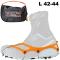 La légèreté des crampons antidérapants Trail Nortec n'est pas une légende. Concrètement, dans la taille L, taille indiquée pour toutes les chaussures allant du 42 au 44, ces crampons ne font pas plus de 180 grammes : on peut parler de poids ultra léger. Très intéressant également, le volume de rangement suit la tendance : stockage compact et transport facile. Par ailleurs, la housse Nortec livrée avec les crampons possède une séparation pour un rangement séparé de chaque crampon : tout est plus facile et plus rapide. L'élastomère (partie orange) des crampons antidérapants Nortec Trail ne craint pas les conditions extrêmes : une température de -60°C (par exemple) ne leur fait pas peur. De plus, l'installation sur vos chaussures (à tige basse uniquement) se fait sans l'aide d'outil et en très peu de temps. Note importante : le modèle Trail Nortec n'est pas compatible avec les chaussures de trekking à tige haute mais uniquement avec les chaussures à tige basse de course, de running et de marche rapide. Construction : l'ensemble de la structure métallique (pointes comprises) bénéficie d'une fabrication en acier inoxydable avec une haute teneur en carbone et on a également un traitement thermique : plus de résistance et plus de durabilité.