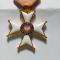 Croix de Chevalier de l’ordre de la Pologne restaurée en tombak plaqué or, émail, 2ème modèle de 1944, type Croix de Malte avec cornes d'armes terminées par des boules, dans un médaillon un aigle, autour duquel POLONIA - RESTITVTA -, au revers dans un médaillon 1944, médaille d'un seul tenant, attachée par un ruban, avec son écrin rouge ornée de l’aigle doré.