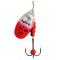 Cuiller tournante Aglia-E Brite Argent Rouge de chez Mepps, composé d'un corps metal et d'une palette argent et rouge.