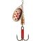 Cuiller Aglia Mepps dans son coloris Points Rouges Cuivre et disponible dans 6 poids différents.