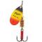 La cuiller tournante Aglia Furia de chez Mepps, une cuiller tricolore jaune, noir et rouge pour la pêche des carnassiers.