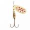 Cuiller tournante Comet Or Points Rouges de chez Mepps, disponible dans 4 poids différents.