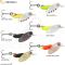 Cuiller tournante in line avec un corps décentré qui viendra nager lui aussi à la récupération. Elle est directement montée avec un rolling pour éviter le vrillage du fil.