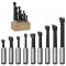 Cutters de perçage 9 pcs 12 mm à base de boisCes barres d'alésage à tige de 9 pièces conviennent à une tête d'alésage MT3 - M12 de 50 mm (2 pouces), parfaite pour le fraisage à tour. Cet ensemble est en acier allié dur, avec une dureté élevée, une haute précision et une haute résistance à la corrosion. Ces couteaux permettent de couper le côté et la partie frontale. Cet ensemble d'outils de 9 tailles différentes répond à divers besoins en matière d'alésage. De plus, vous pouvez ranger les couteaux en toute sécurité en place dans la base en bois incluse.