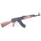 Cyma propose un modèle d'AK-47 en polymère avec garde-main, crosse et poignée en imitation bois. Cette réplique légère est équipée d'une gearbox en métal lui conférant une bonne durée de vie.