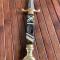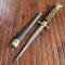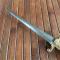 Belle dague avec fusée incrusté de nacre et laiton avec des manques , pommeau croissant en laiton et garde laiton. Belle lames 4 pans sans piqûre.