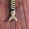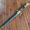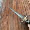 Fourreau bois recouvert de feutre bleu chape argent.