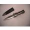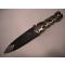 Dague Celtique. Manche en métal avec entrelacs Celtiques en relief et orné d'une pierre de synthese facetée. Lame acier inox stainless crantée; 3mm d'épaisseur en haut.