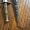 Fusée en bronze, lame double tranchant fourreau de ceinture en cuir . Belle état .