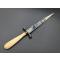 Belle dague stylet gravée à l'acide d'un coeur traversé par des flèches, tambour et étendards, feuilles de chêne .. et bleui sur la lame droite à arrête médiane et talon plat, garde en fer quillons en forme de boule, poignée en os sculptée avec un fêle partant de la virole. Longueur totale 23cm, sans fourreau