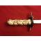 GARDE EN CORNE DE BUFFLE AVEC PATTES DE CERF EN BRONZE ARGENTE , ET INCRUSTATIONS EN ARGENT ?
