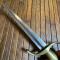 Manche en bronze de fabrication robuste monobloc, garde à quillons contrarié en S .
