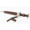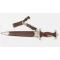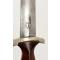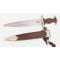Dague SA de fabrication précoce avec la combinaison complète des trois pièces permettant le port de l'arme à la verticale, prise et utilisée par le résistant su sud ouest France Georges Penchenier (1919-2006). Garniture en maillechort patinées. Poignée en bois marron. Insignes SA et aigle montés d'origine et parfaitement incrustés. Garde marquée Sw, Belle lame présentant des tâches et usure de la pointe. Devise SA "Alles Für Deutschland", fabrication Aesculap Tuttlingen. Fourreau dans sa finition d'origine légèrement taché sans déformation. Courte bélière en cuir avec mousqueton maillechort second modèle, petit passant à bouton pression. Usure et patine de l'ensemble parfaitement authentique.