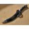 Lame acier inox non aiguisée, manche et fourreau renforcé de ferrures métal. Corps du fourreau imitation cuir noir. Longueur totale: 43cm Longueur lame:28cm Livré dans sa boite de présentation. Vente interdite aux mineurs.