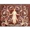 La fusée est en os sculpté en bas-relief de rinceaux feuillagés et de deux figures féminines nues, en pieds et vues de face. Elles tiennent chacune de leurs deux mains des rinceaux, l’une bras levés, l’autre bras baissés.