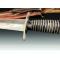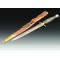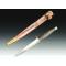 Un premier type de gaine vit le jour, en cuir, inspirée par celle de son modèle, avec toute fois une patelette à pression en haut à la place de la bande élastique; la patte de suspension est plus fine et le ceinturon passe entre les 2 épaisseurs de cuir ; suppression des 4 pattes destinées à être cousues sur la tenue : alourdissement de la bouterolle, pour compenser le poids de la poignée, et adjonction d'un lacet de jambe; le tout réalisé avec le concours de M.Charon, fourbisseur à Paris. Avec les années, une petite patte en métal embouti fut ajouté au fourreau afin d'en faire un poignard de botte. De même, pour démarcher les contrats militaires éventuels, un étui en métal fut crée, plus solide et plus rigide, doté intérieurement de battes pour maintenir l'arme. Ce modèle est prévu avec un passant de ceinture et une patte à pression en forte toile.