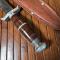 Pommeau et garde en aluminium, Manche en rondelles de cuir, lame simple tranchant acier inoxydable.