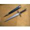 Trés jolie dague avec fourreau et poignée en ABS ornés de ferrures métal couleur bronze détaillées en relief, idem pour la garde et le pommeau (voir photos)