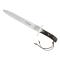 Dague MUELA « BOWIE », lame double tranchant 26 cm acier inox X50CrMoV15, manche plaquettes cerf véritable, étui cuir. Une pointe légèrement arrondie permet d'éviter le blocage de la lame par piquage dans un os.