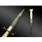 Dague de vertu à lame en acier entièrement gravé à l’acide d’un décor feuillagé. Fusée à pommeau en demi-lune, centré d’un blason et garde à quillons droits terminés en boules.