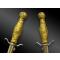 Dague de vertu à lame en acier hexagonale, fusée bombée en bronze à décor feuillagés en bas-relief, pommeau boule décoré en suite, garde à deux quillons en volutes et fourreau en maillechort à anneau de bélière.