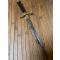 Fusée en bois ébène amorce de fêle éclat infime , empreinte de pouce , croisière quillon laiton , forte lame triangulaire bleuie sur sa longueur et gravures rehaussée à l'or , volupte, trophées d'armes , courronne royal ,trois fleurs de Lys etc... marqué "VIVE LE ROY"