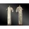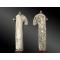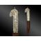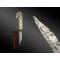 Lame courbe à un tranchant, gravée d’une fleur sur côté. Poignée en métal recouvert d’argent finement gravée de feuillages sur un côté et d’une inscription de l’autre.