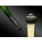 Fourreau en bois recouvert de velours vert, chape en argent gravé de motifs géométriques à passant de ceinture, bouterolle en argent ciselé de grenades et motifs géométriques.