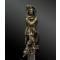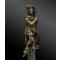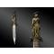 Fusée en bronze représentant un jeune mousquetaire tenant un bouclier aux fleurs de lys, reposant sur une base circulaire à deux têtes de loup formant la garde.