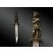 Lame à un tranchant et un contre tranchant, gravée de rinceaux et de deux personnages dans deux cartouches sur chaque pan ; daté « A?O DE 1880 » sur un côté et marqué « FABca DE TOLEDO » sur l’autre.