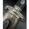 Chape, bouterolle et passant de ceinture en laiton argenté.