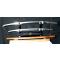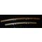 Bel ensemble de 2 sabres antiques portés jadis par les samourais et appelé "DAISHÔ" (traduction : contraction de « Daito » et « Shoto »= grand sabre et petit sabre) . Cet ensemble est composé d'un katana et d'un wakizashi forgés par 2 forgerons appartenant à la même école Takada de la province de Bungo. Les sabres sont en monture de préservation (shirasaya) et reflètent un très bon état "collection". Les 2 lames sont signées et leur authenticité est reconnue par les certificats japonais de la NBTHK et de la NBTK. Le katana forgé par "Munekage" en période 1592-1596 serait le plus représentatif de cette école d'après Mr Markus SESKO et le wakizashi forgé par « Nagayuki » daterait de la période 1596-1615,