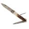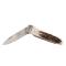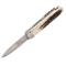 Montage par rivets. Manche 13,5 cm en bois de Cerf, ressort et lame guillochés main.