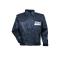 Ce blouson bleu marine est composé à 63 % de polyester, 35 % de coton et à 2 % de fils métalliques.