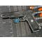 Les plaquettes plastiques noires apportent une touche de sobriété au design de l'arme. Le pistolet a une capacité de chargeur de 8+1 coups, permettant de charger huit cartouches dans le chargeur plus une dans la chambre. Chambré en calibre 45 ACP, une munition reconnue pour sa puissance et son efficacité, il offre une expérience de tir performante.