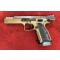 L'arme est livrée dans une superbe mallette contenant 3 chargeurs 20 coups, une chargette, un nécessaire d'entretien, un calepin, clés BTR et toutes sortes de pièces de rechange (ressorts de différents tarages, etc...). Le look de cette arme avec revêtement Cerakote Bronze, canon poli et plaquettes alu quadrillées est superbe. Le poids est conséquent (1.3 kg) mais indispensable a un enchaînement rapide des coups sans perte de la visée. La prise en main est excellente, le repose pouce et les leviers de sécurité ambidextres bien placés, bouton de chargeur assez proéminent pour un changement de chargeur ultra-rapide dans la course. Les organes de visé sont d'une netteté parfaite pour un tir instinctif, la hausse réglable est dans un logement fraisé dans la carcasse afin de réduire la hauteur pour une visée flat.