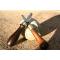 LE SECOND UN PEU PLUS GRAND SOIT 118 mm POSSEDE UN MANCHE EN BOIS EN FORME DE POIRE AVEC DEUX TRES LEGERES FENDILLES PRES DE SA VIROLLE
