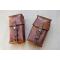 Deux sacoches, dotées chacune d'un large compartiment sans séparation, longue patte cuir se repliant dans le dos de l'objet pour former passant de ceinture. Fermeture par patte de cuir sur un bouton alu.