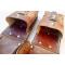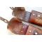 En cuir fauve joliment patiné, encore très souple grâce au tanage végétal de grande qualité.