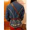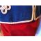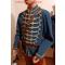 Orné de 9 brandebourgs en laine blanche de deux brins de soutache et de trois rangées de boutons neuf boutons demi-sphériques en étain.