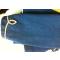 En drap bleu de ciel (plusieurs réparations et trous de mite voire les cercles rouges).