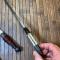 - Poignard , manche et fourreau en beau cuir avec frange , solide lame à pans double tranchant très affûté. Total 30cm.