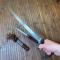 - Petit sabre manche corne , plaquettes en os Bonne lame courbe à gouttière robuste et effilée.
