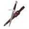 Son fourreau en cuir décoré de croix templières argentées, doté d'une large boucle et d'une lanière de maintien, permet de la porter à la ceinture, notamment en complément de l'épée Accolade.