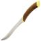 Celle-ci se compose d'une lame en acier inoxydable 440, d'un manche en bois nervuré et particulièrement beau ainsi que d'une garde et d'un pommeau en métal doré.