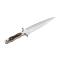 Le manche en bois de cerf, avec sa finition naturelle, confère à la dague une esthétique raffinée et une prise en main confortable. La couleur blanche de la lame contraste élégamment avec le manche, ajoutant une touche de sophistication à l'ensemble.