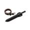 La lame, également noire, est fabriquée en acier au carbone, un matériau reconnu pour sa robustesse et sa durabilité. Ce modèle fixe, avec un tranchant lisse, est conçu pour des performances fiables et constantes. L'étui en cuir inclus permet un port sécurisé et pratique, complété par une longue lanière pour un port à la ceinture.