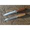 La lame est en acier au carbone au fini blanc brillant, plaquettes en bois avec poignée à 3 goupilles.